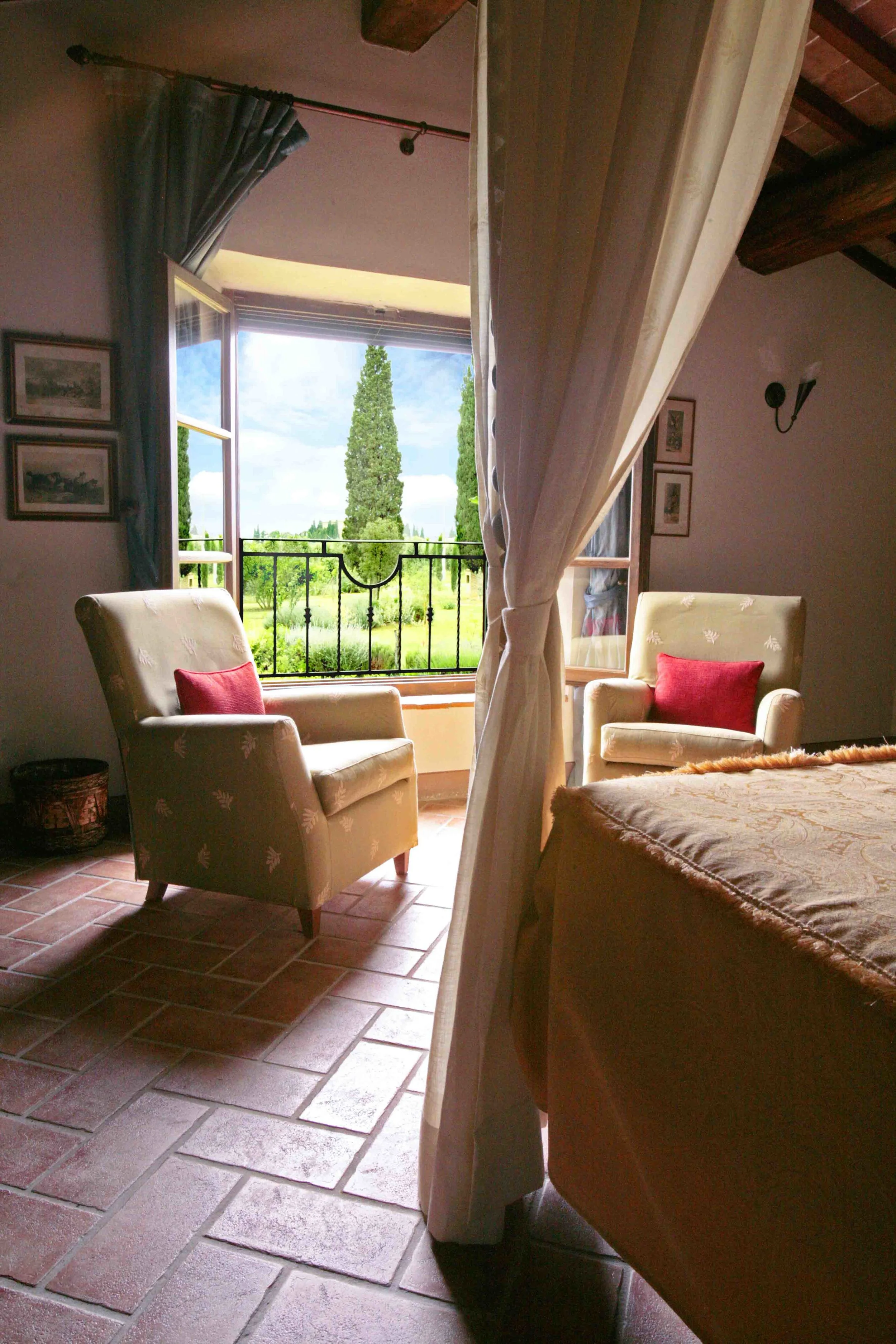 The two-floor country house has a characteristic U-shaped structure. The ground floor accommodates the Master room (120 m2), which is heated by a beautiful Tuscan fireplace. Next to this, we have two kitchens, a study and two bedrooms. All the ground floor rooms open up onto an internal courtyard, protected by an American grape arbor where basil, rosemary and climbing roses release their perfumes. On the first floor, guests are welcomed to twelve bedrooms, eight bathrooms, three living rooms and a library. A unique view can be enjoyed from the windows, over the majestic rows of vineyards, enclosed by rose bushes.